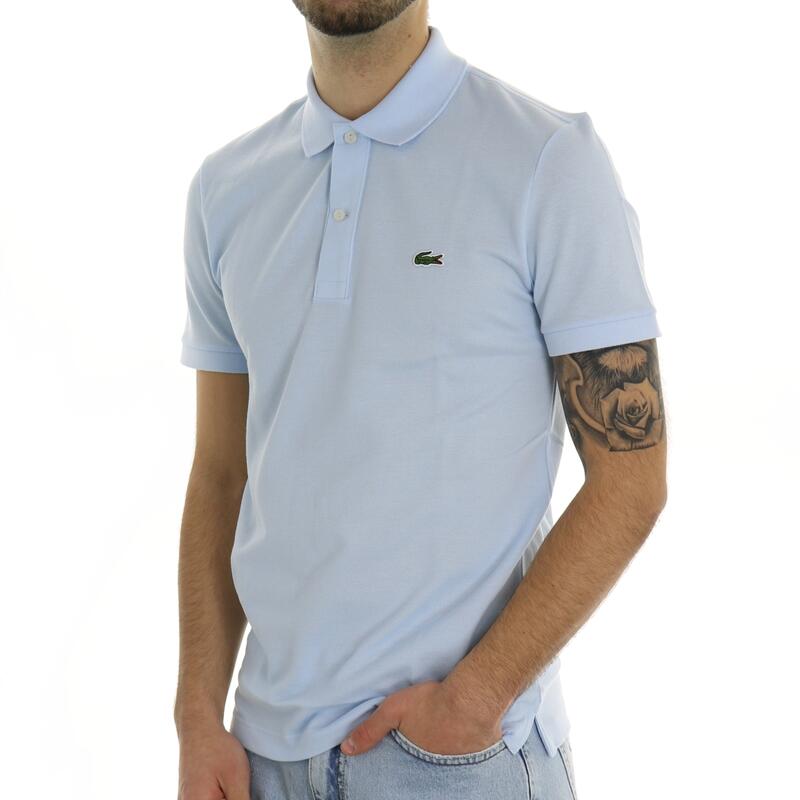 Polo mezza manica, tinta unita, due bottoni, mini logo ricamato frontale. Vestibilità slim.