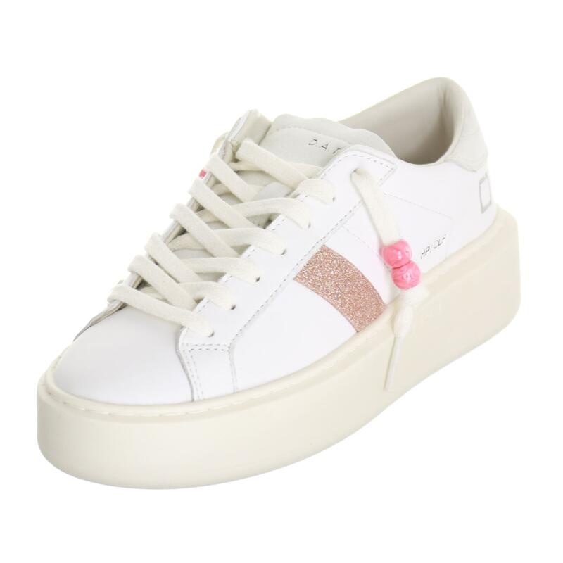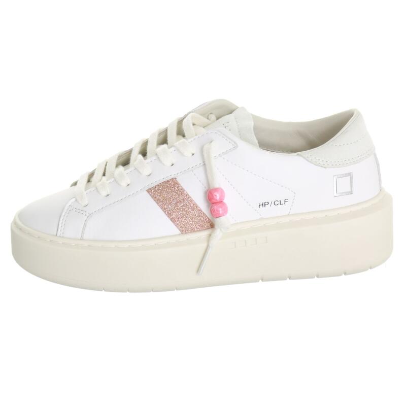 Sneakers in pelle, linguetta in pelle con logo D.A.T.E. impresso e lacci in cotone con applicazioni. Il logo quadrato e il nome del modello sono impressi lateralmente. Talloncino posteriore in pelle bianca e suola platform alta 4-5 cm. Calzata regolare.