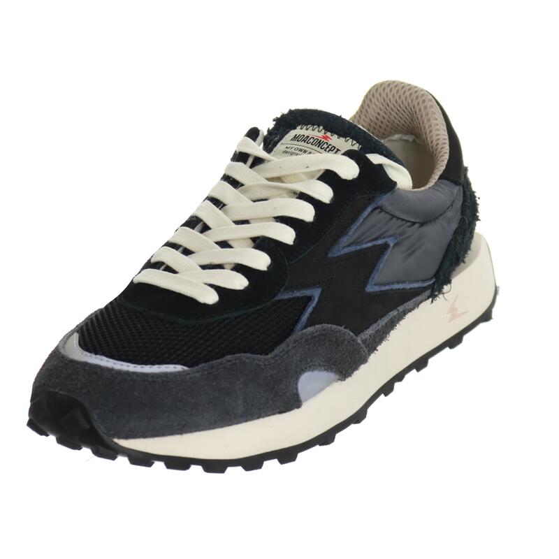 Sneakers unisex nere in suede e nylon, con dettagli suede graffiato antracite e logo in pelle nero, suola alta 3,2 cm. Calzata regolare.