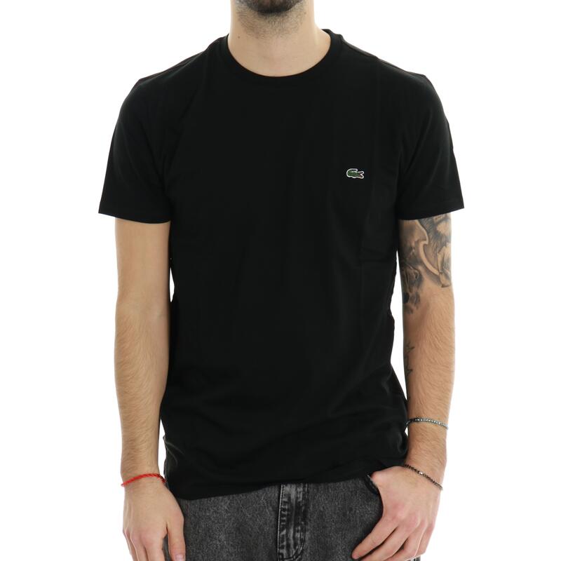 T-shirt mezza manica, tinta unita, mini logo ricamato frontale. Vestibilità regular.