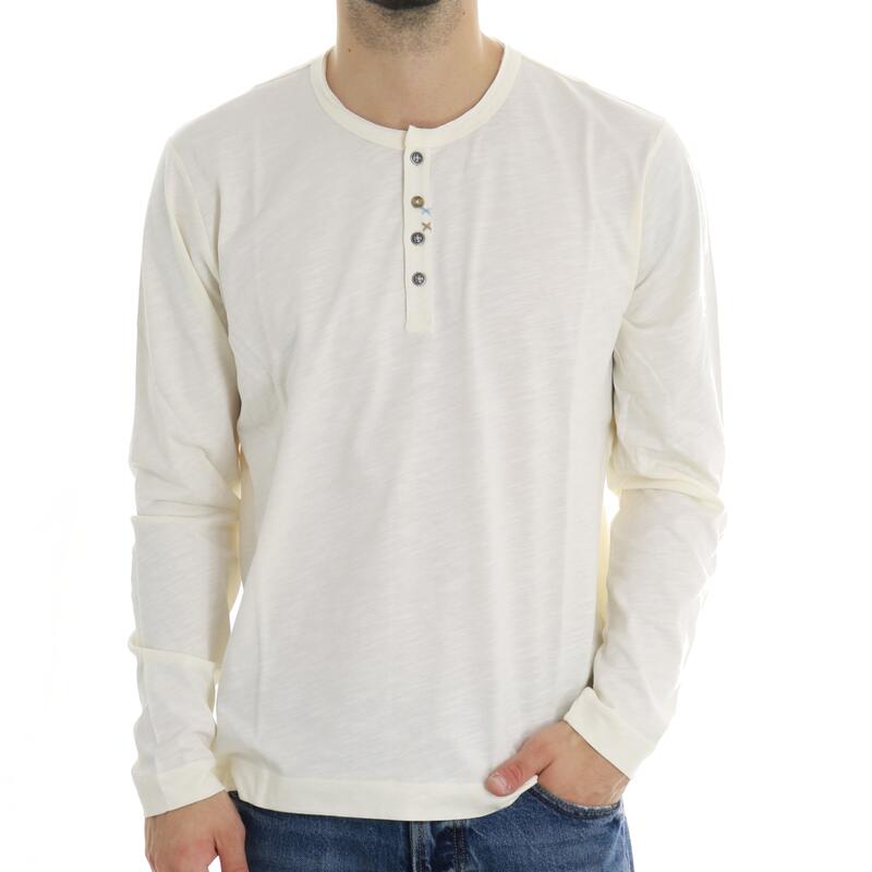 T-shirt a maniche lunghe in cotone fiammato tinta unita, girocollo con bottoncini. Vestibilità slim.