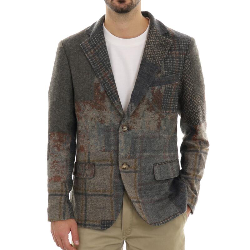Giacca monopetto in misto lana, fantasia. Vestibilità regular.