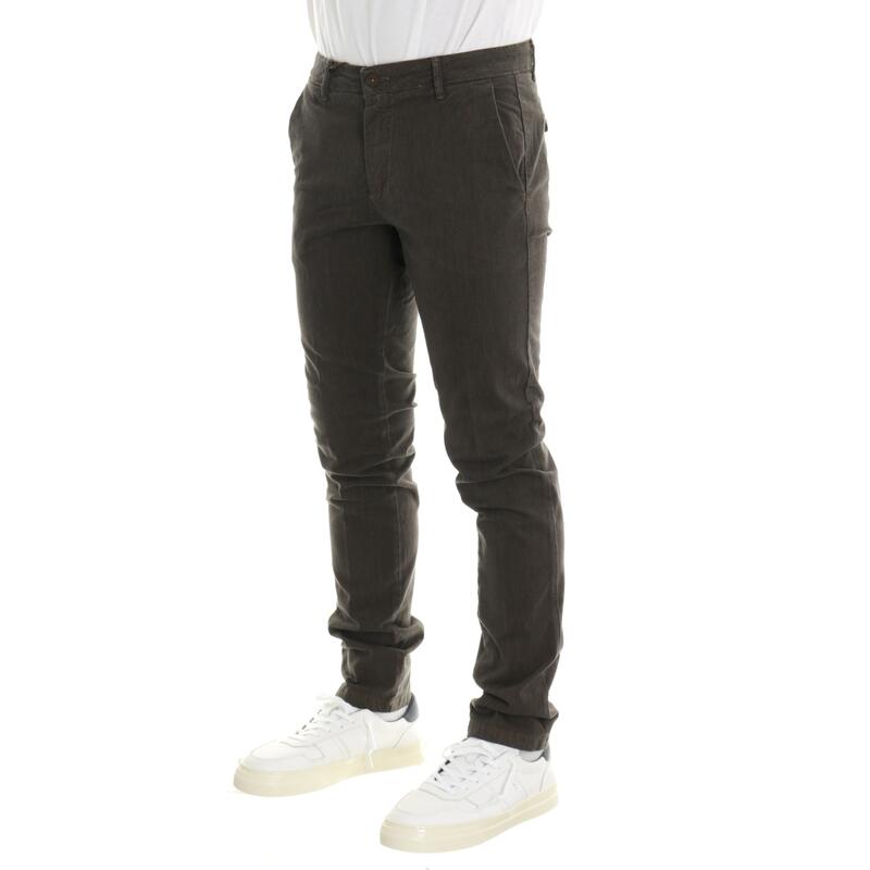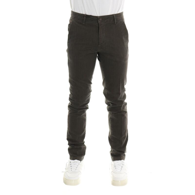 Pantalone chino in fantasia, vita media, tasche america. Vestibilità slim.