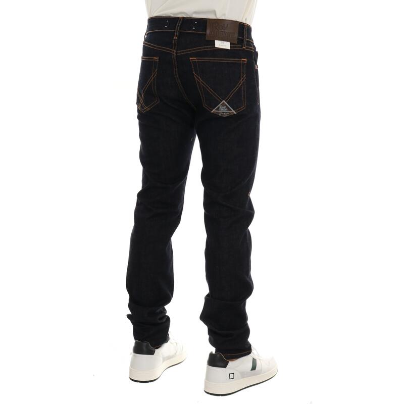 Jeans stretch lavaggio medio, salpa a contrasto e logo sulla tasca dietro, chiusura con bottoni. Vestibilità regular.