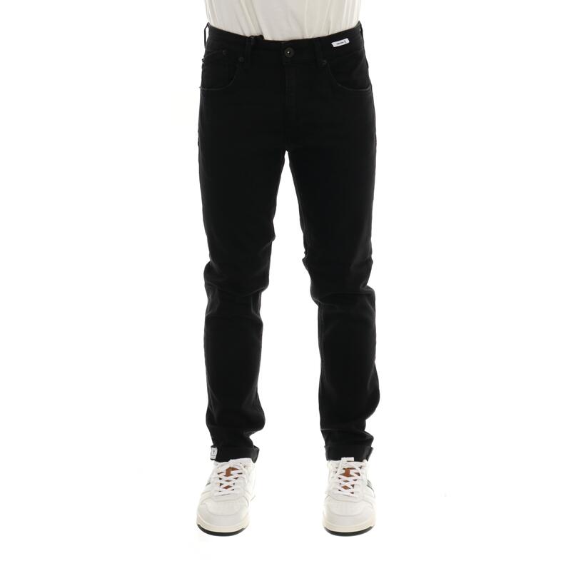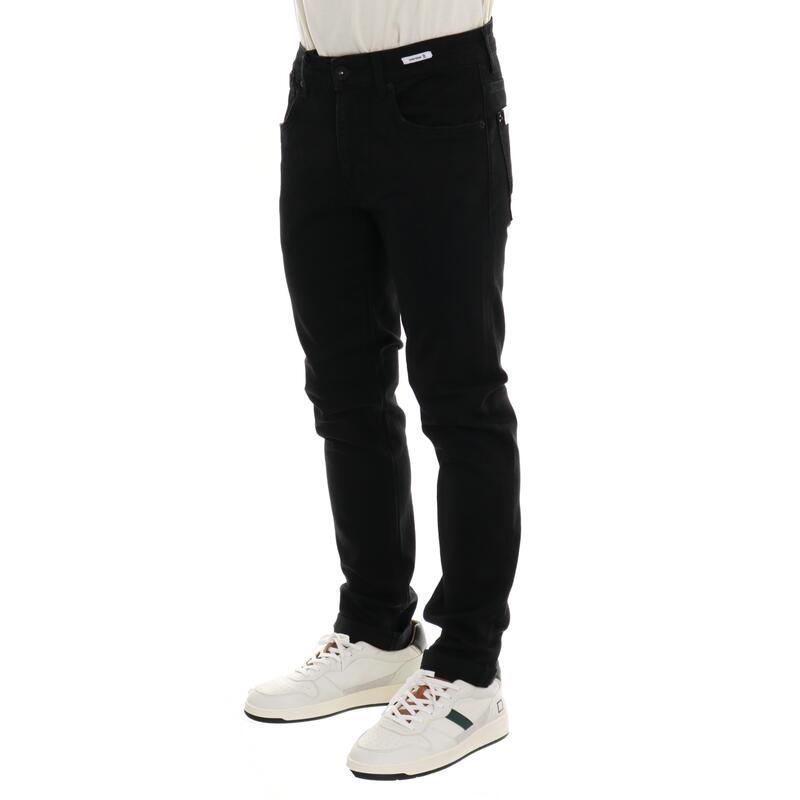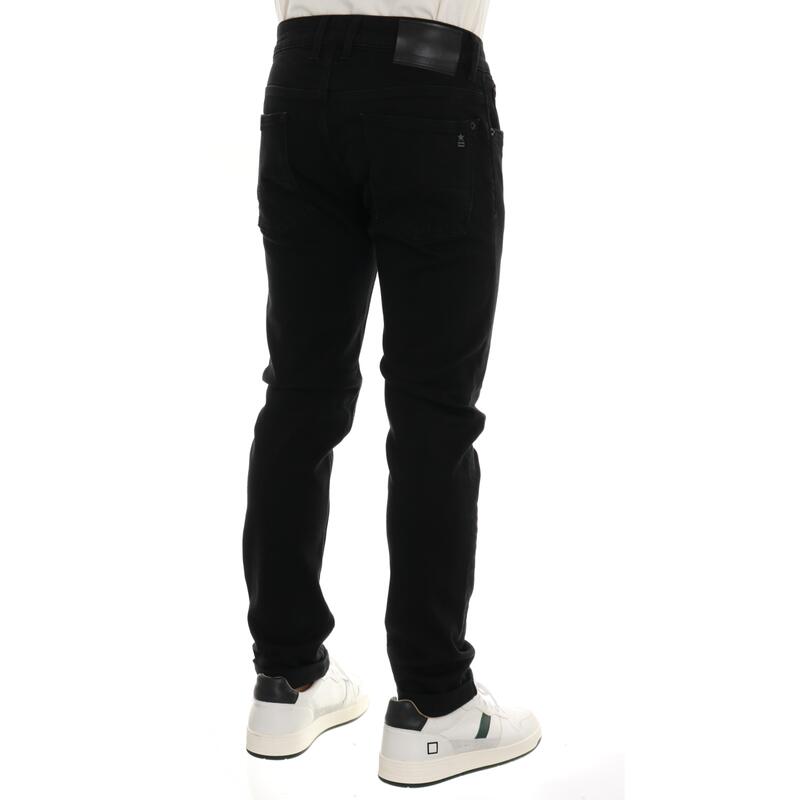 Jeans stretch nero, vita media, chiusura con bottone e zip. Vestibilità skinny.